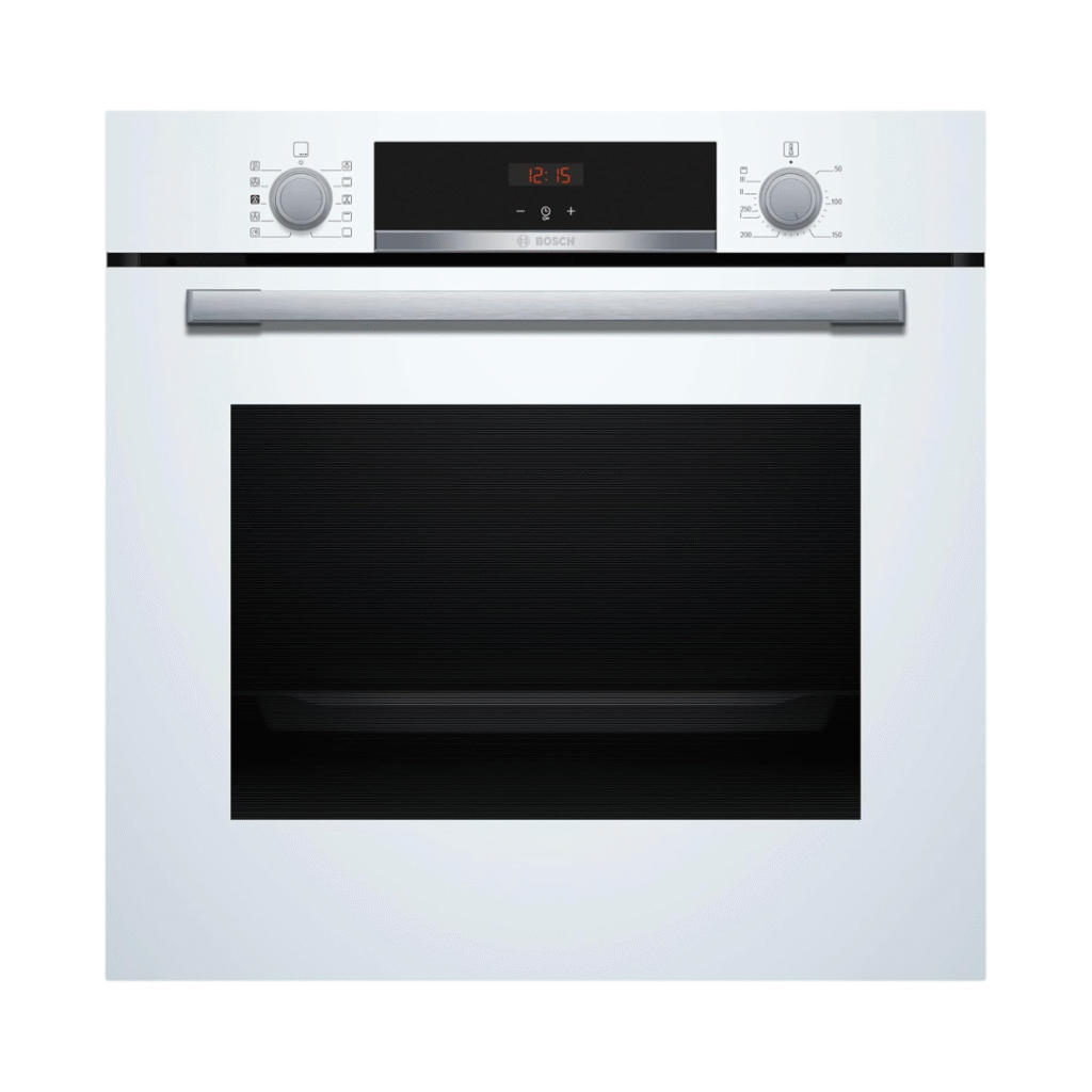For appliances, a built-in fridge was a must-have. What my client didn’t know, however, was that these days you can buy white appliances for the family kitchen. This was a game-changer! Against the white furniture and light stone, a white oven or hob blends in seamlessly, creating a much cleaner look for your eye and a beautiful overall aesthetic.